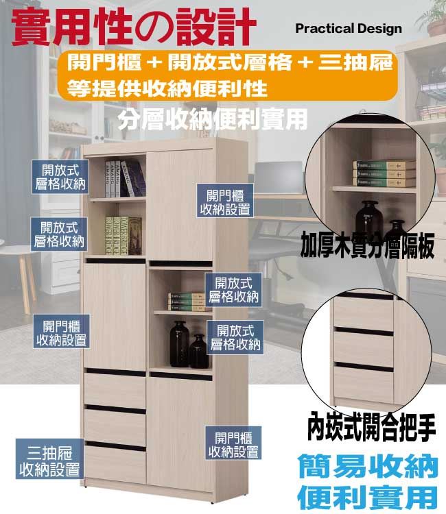 商品 介紹 | 【綠家居】麥森2.7尺三門三抽書櫃 淺橡木紋色系+現代簡約風格+安心材質製造,使用放心+搭配居家更便利,整體採用防蛀木心板+防潮耐磨腳座+五金滑軌結構+防夾手緩衝門片五金等材質製造搭配外層採用優莉坦耐磨全包式噴漆處理 ,採用開門櫃+三抽屜+開放式層格等收納空間設計,全由專人配送到家,專業安心服務,替你省下更多時間! 【商品特色】 淺橡木紋色系+現代簡約風格+安心材質製造,使用放心+搭配居家更便利 防蛀木心板+防潮耐磨腳座+五金滑軌結構+防夾手緩衝門片五金等材質製造 採用開門櫃+三抽屜+開放式層格等收納空間設計 此商品不需要DIY組立,此商品為組立後之成品 品質保證、專業設計、貼心服務 全由專人配送到家,專業安心服務,替您省下更多時間 |