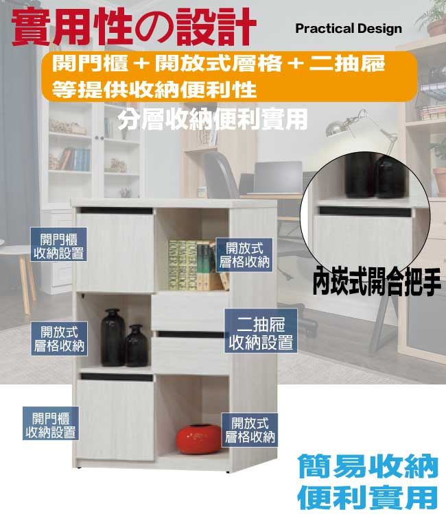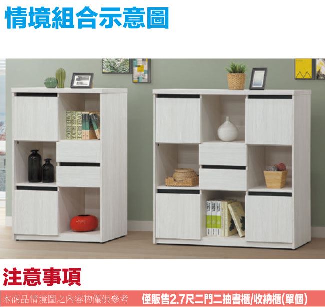 【綠家居】卡奇里2.7尺二門二抽中高書櫃/收納櫃