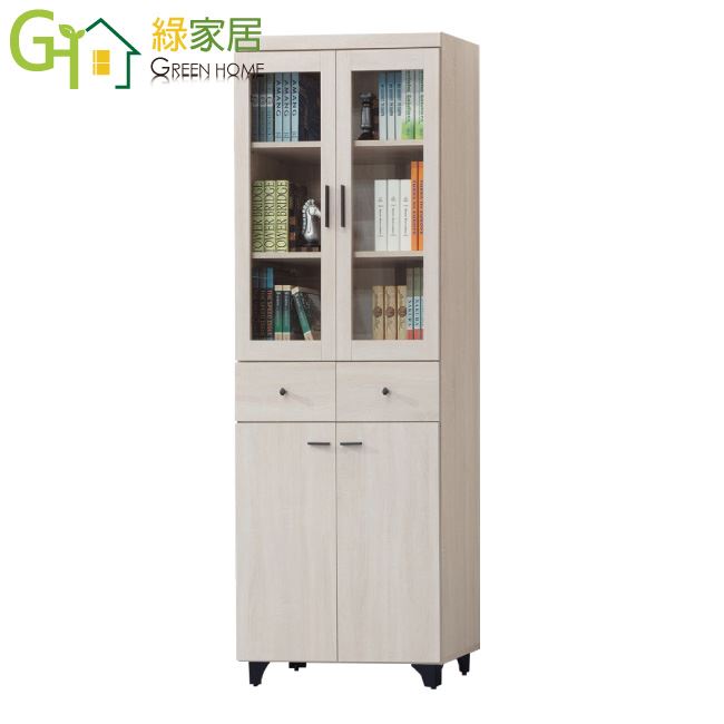 【綠家居】古特2.7尺二抽四開門高書櫃/收納櫃
