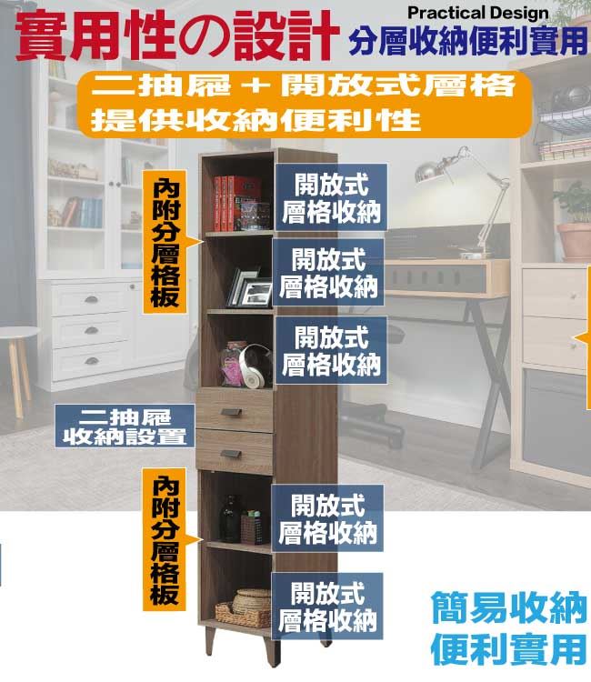 【綠家居】馬蓋亞1.3尺二抽開放書櫃/收納櫃