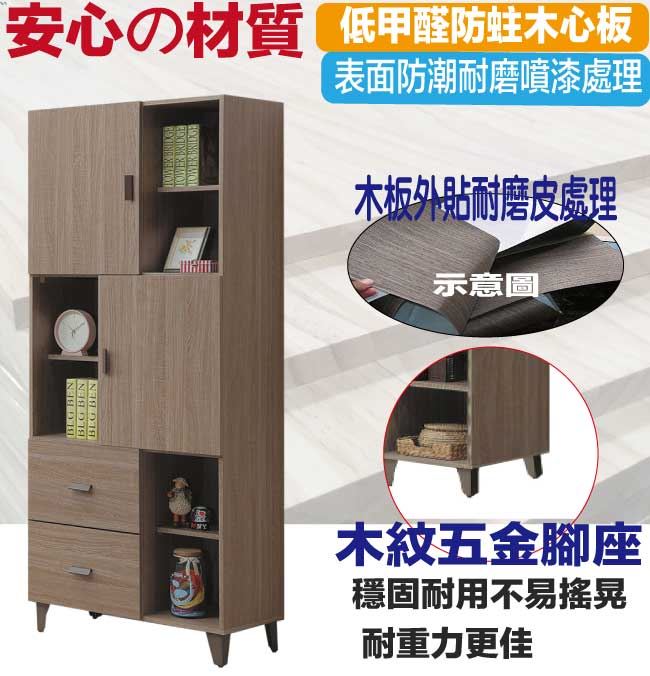 【綠家居】馬蓋亞2.7尺二門二抽書櫃/收納櫃