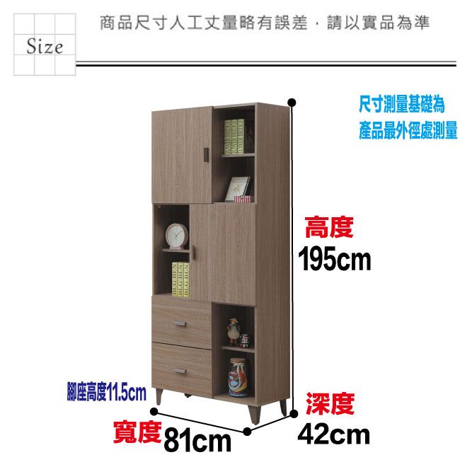 材質 | ◆產品名稱:【綠家居】馬蓋亞2.7尺二門二抽書櫃/收納櫃 尺寸:(寬)81x(深)42x(高)195/公分 ◆材質: 材質:防蛀木心板+木紋五金腳座+五金滑軌結構+防夾手緩衝門片五金 表面防潮耐磨噴漆處理 |