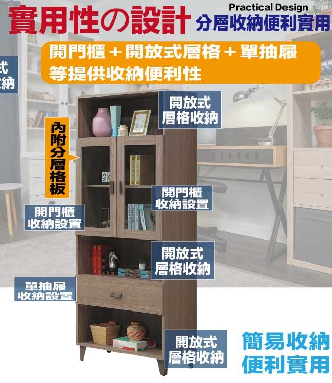 【綠家居】馬蓋亞2.7尺二門單抽書櫃/收納櫃