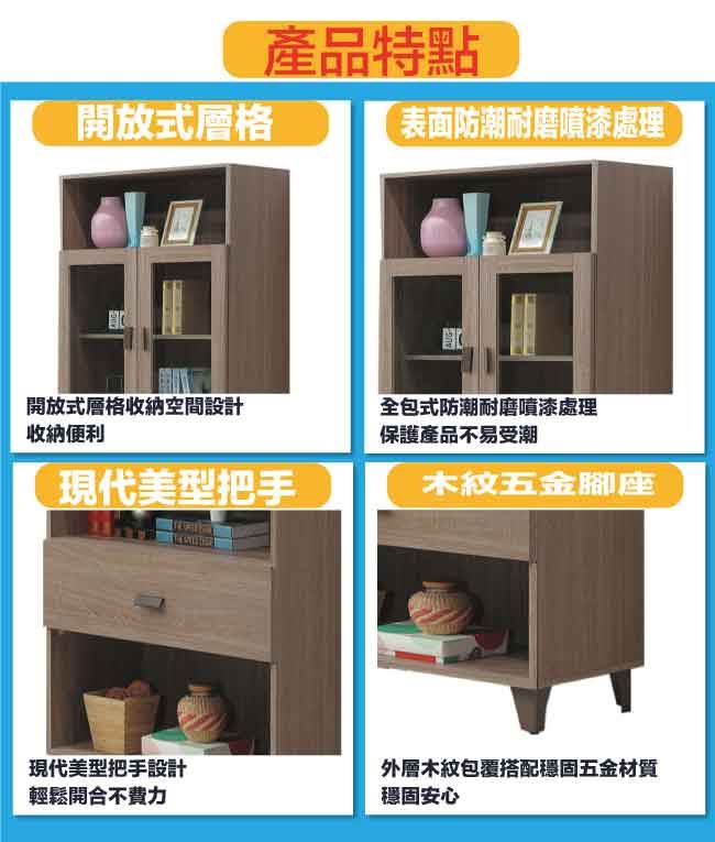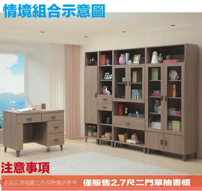 商 品 介 紹 | 【綠家居】馬蓋亞2.7尺二門單抽書櫃/收納櫃 灰橡木紋色系+現代簡約風格+安心材質製造,整體採用防蛀木心板+木紋五金腳座+五金滑軌結構+防夾手緩衝門片五金等安心材質製造,產品外層採用表面防潮耐磨噴漆處理搭配採用開門櫃+單抽屜+內&外開放層格等收納設計,全由專人配送到家,專業安心服務,替你省下更多時間! 【商品特色】 灰橡木紋色系+現代簡約風格+安心材質製造,使用放心+搭配居家更便利 採用防蛀木心板+木紋五金腳座+五金滑軌結構+防夾手緩衝門片五金等安心材質製造 採用開門櫃+單抽屜+內&外開放層格等收納設計 此商品不需要DIY組立,此商品為組立後之成品 品質保證、專業設計、貼心服務 全由專人配送到家,專業安心服務,替您省下更多時間