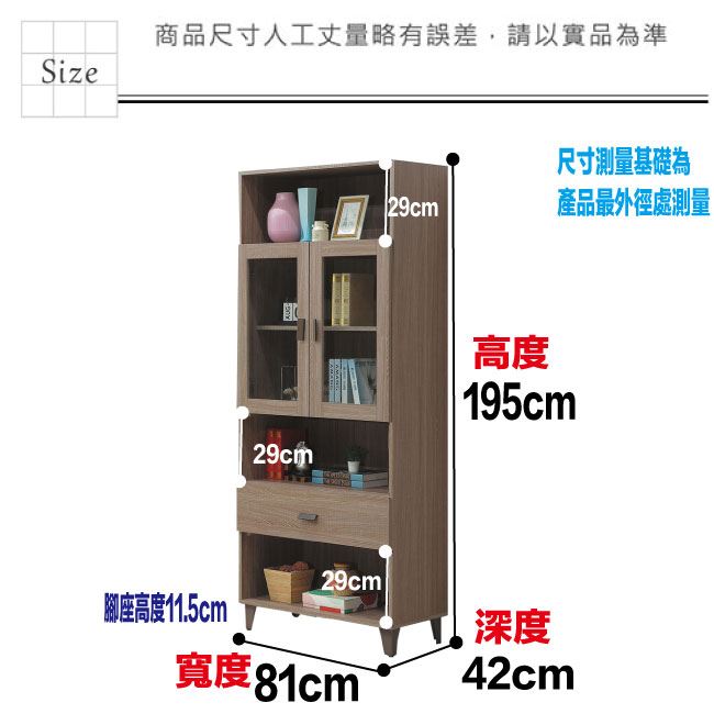 材質 | ◆產品名稱:【綠家居】馬蓋亞2.7尺二門單抽書櫃/收納櫃 尺寸:(寬)81x(深)42x(高)195/公分 ◆材質: 材質:防蛀木心板+木紋五金腳座+五金滑軌結構+防夾手緩衝門片五金 表面防潮耐磨噴漆處理 |