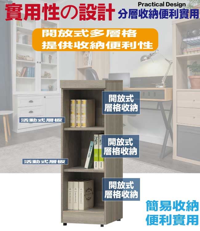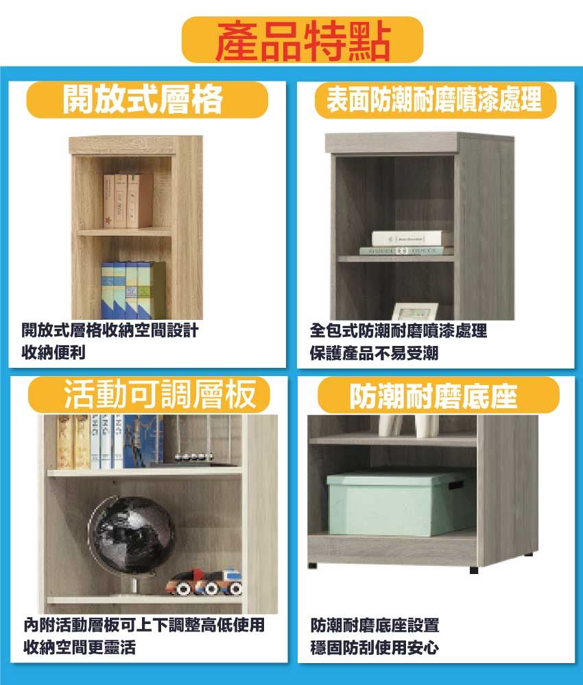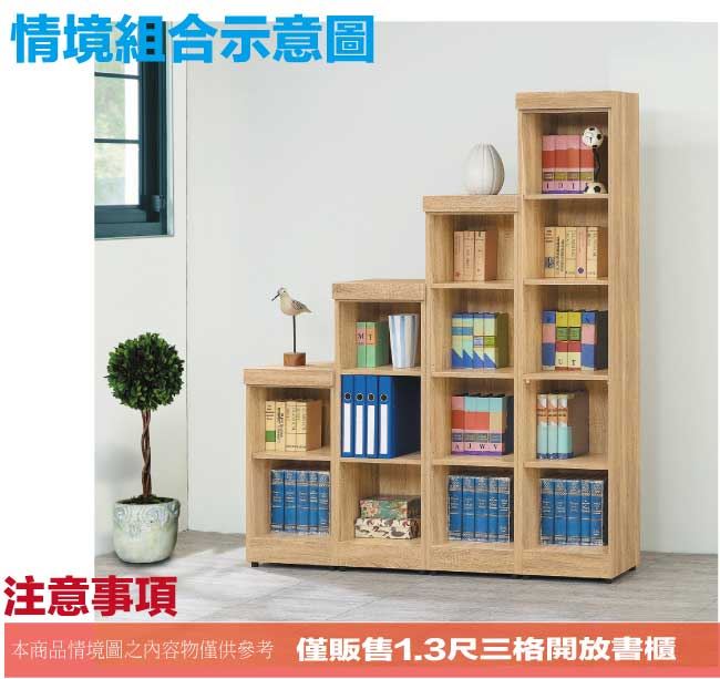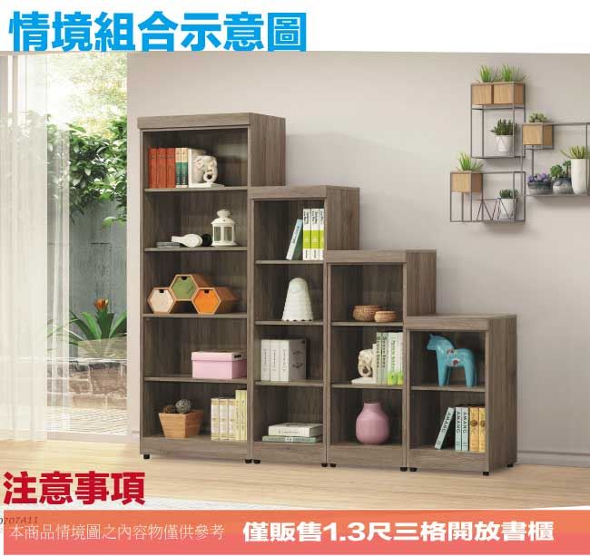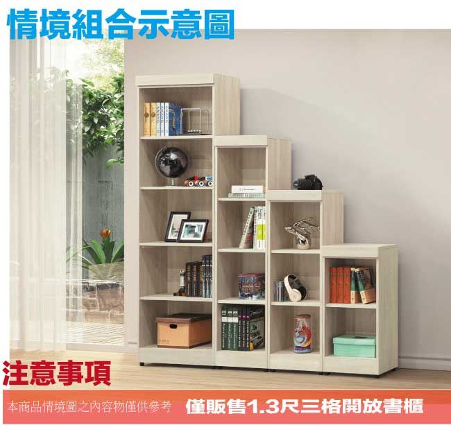 【綠家居】楚門1.3尺開放式三格書櫃/收納櫃(四色可選)