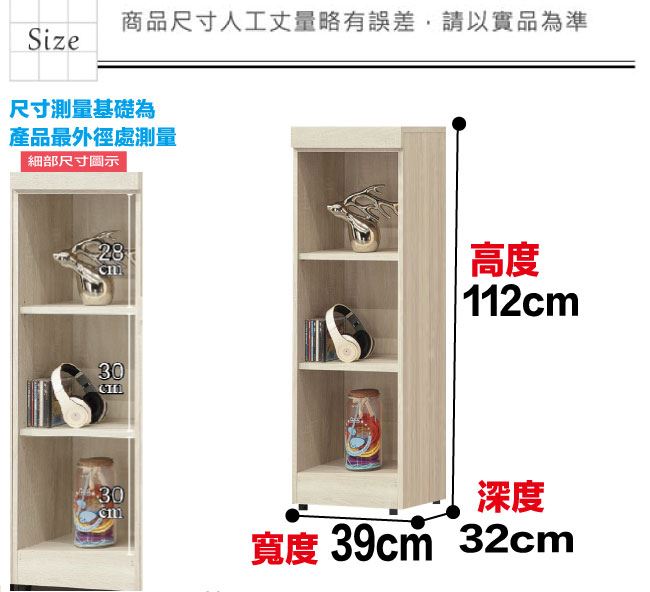 材質 | ◆產品名稱:【綠家居】楚門1.3尺開放式三格書櫃/收納櫃(四色可選) 尺寸:(寬)39x(深)32x(高)112/公分 ◆材質: 材質:防蛀木心板+防潮耐磨底座 表面防潮耐磨噴漆處理 |