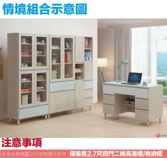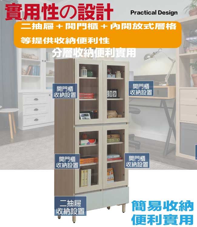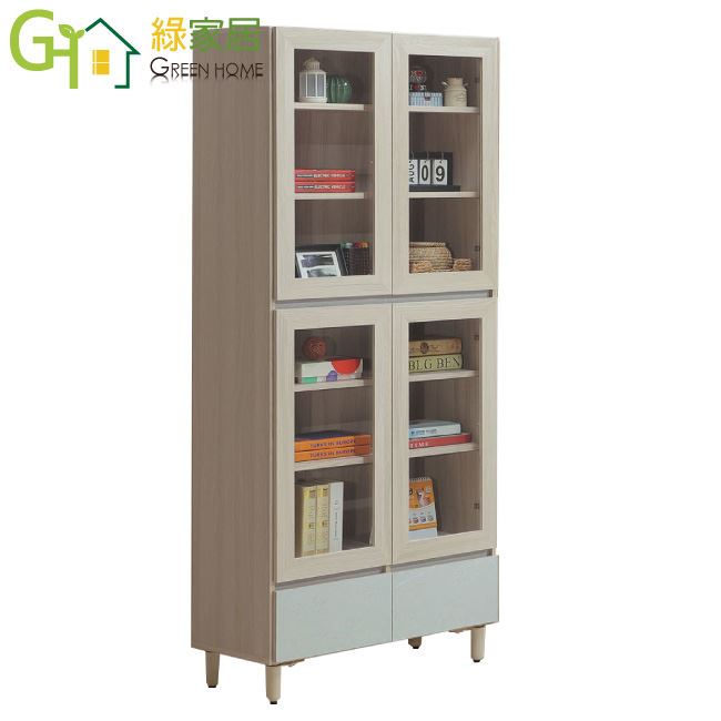 【綠家居】馬蘭雙色2.7尺四門下二抽書櫃/收納櫃