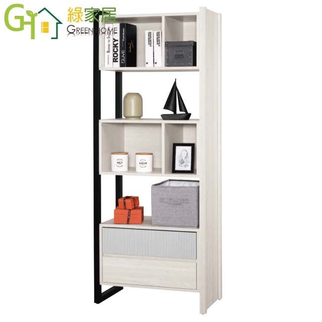 【綠家居】克萊雙色2.3尺二抽開放玄關櫃/書櫃