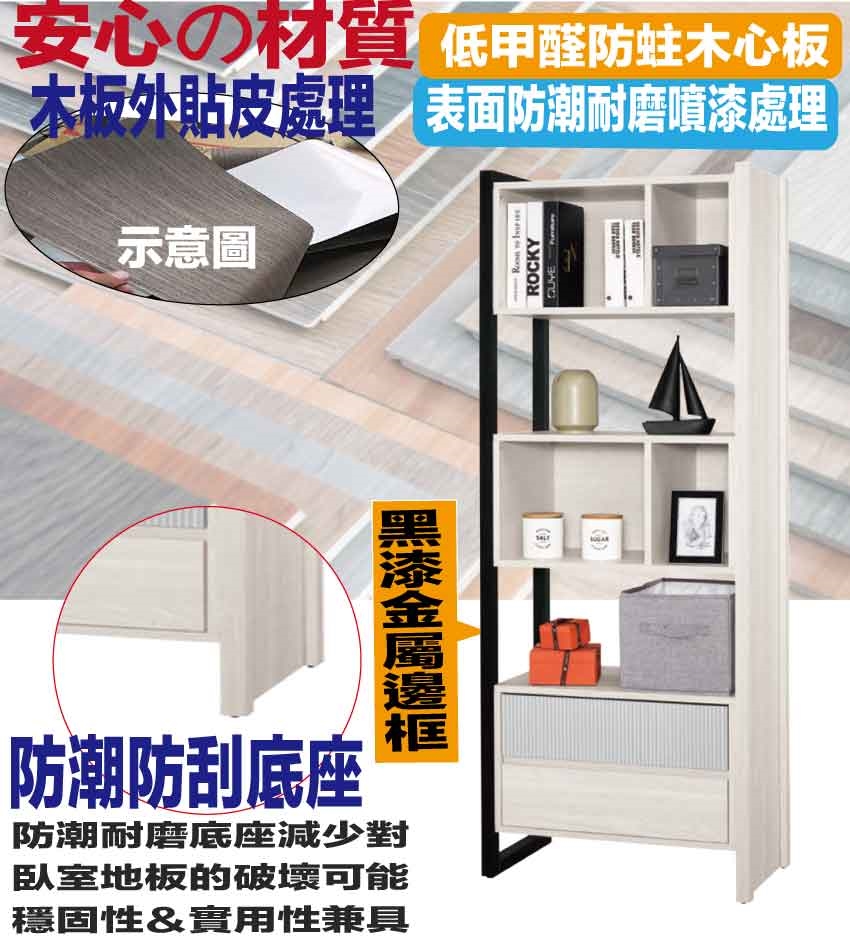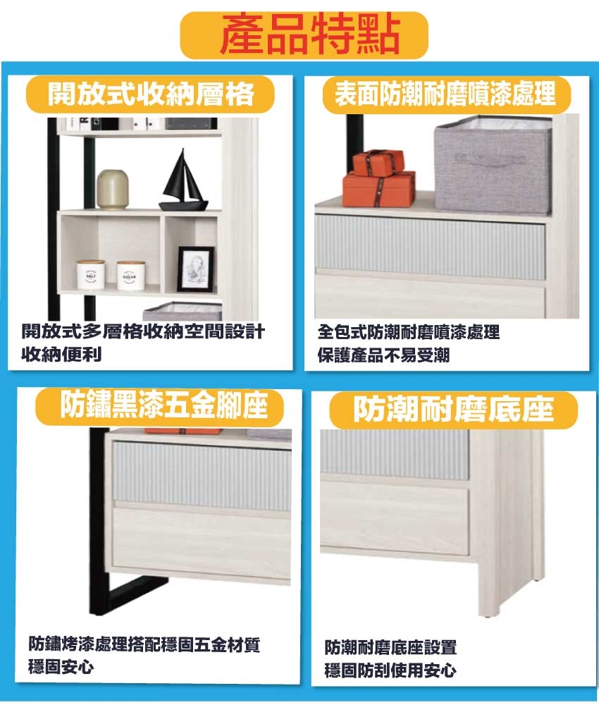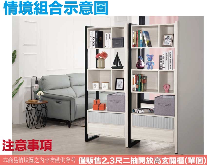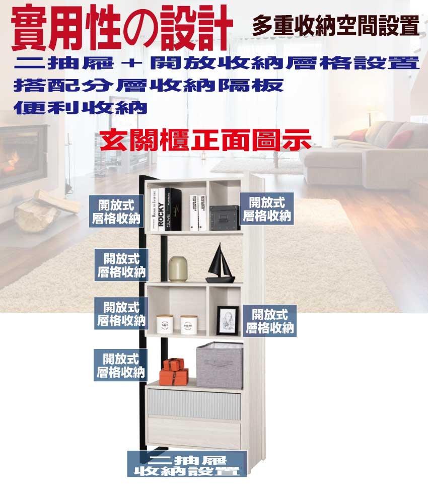 - ◆產品名稱:【綠家居】克萊雙色2.3尺二抽開放玄關櫃/書櫃