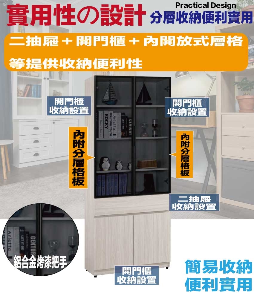 - ◆產品名稱:【綠家居】萊格2.7尺鋁門黑玻單抽書櫃