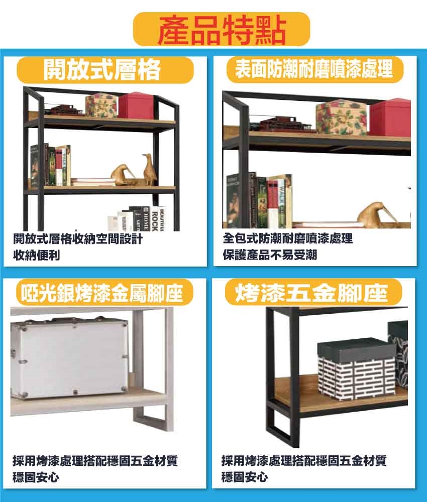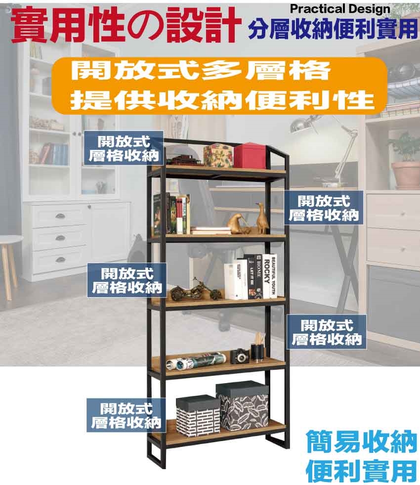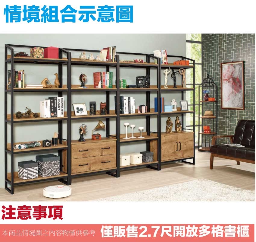 - ◆產品名稱:【綠家居】華爾2.7尺開放式金屬邊框書櫃(二色可選)