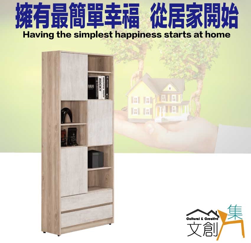 - ◆產品名稱:【綠家居】諾爾雙色2.7尺三門二抽書櫃