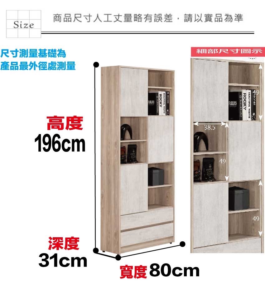 尺寸:(寬)80x(深)31x(高)196/公分