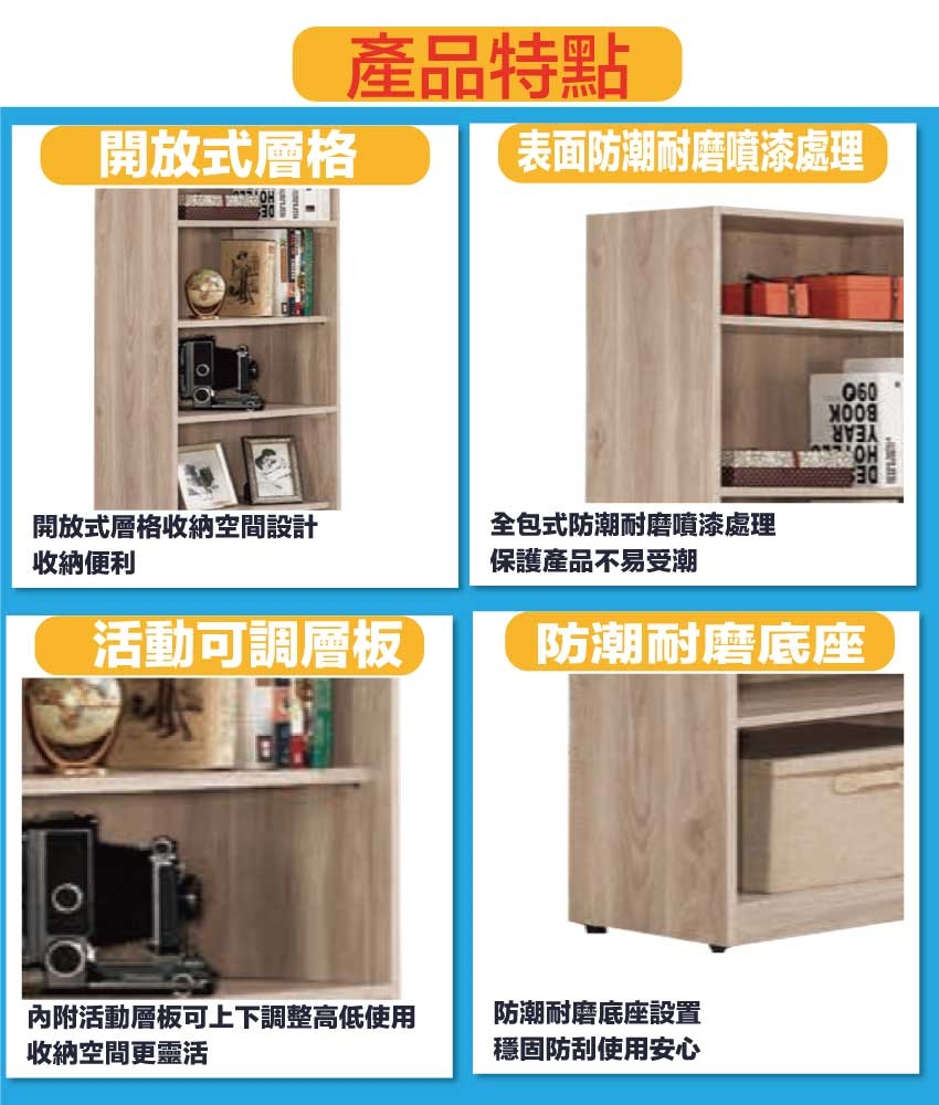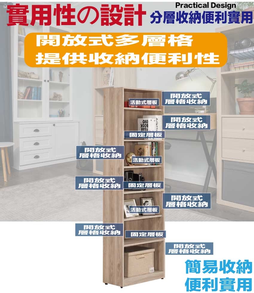 - ◆產品名稱:【綠家居】諾爾2尺開放式多格書櫃