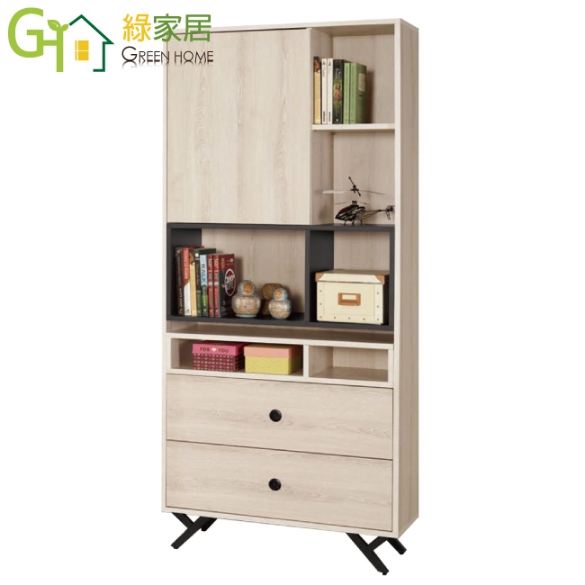 【綠家居】米利2.7尺單門二抽開放書櫃