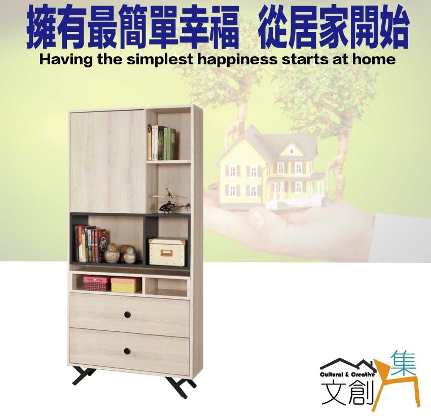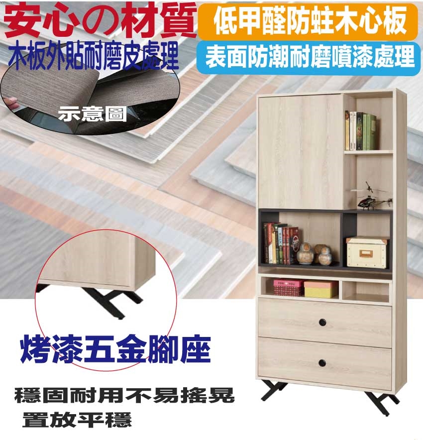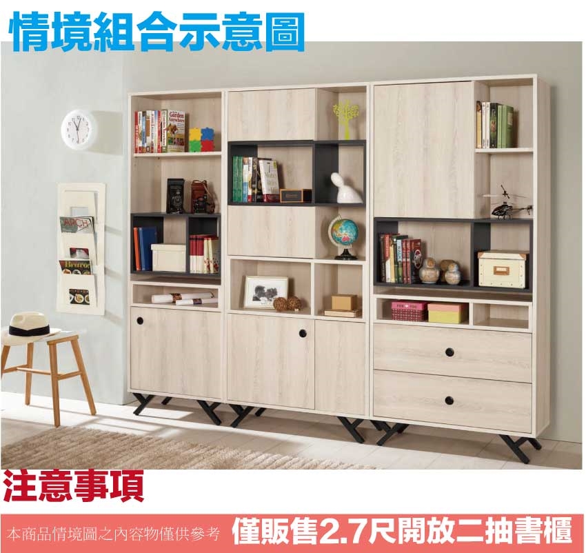 - ◆產品名稱:【綠家居】米利2.7尺單門二抽開放書櫃