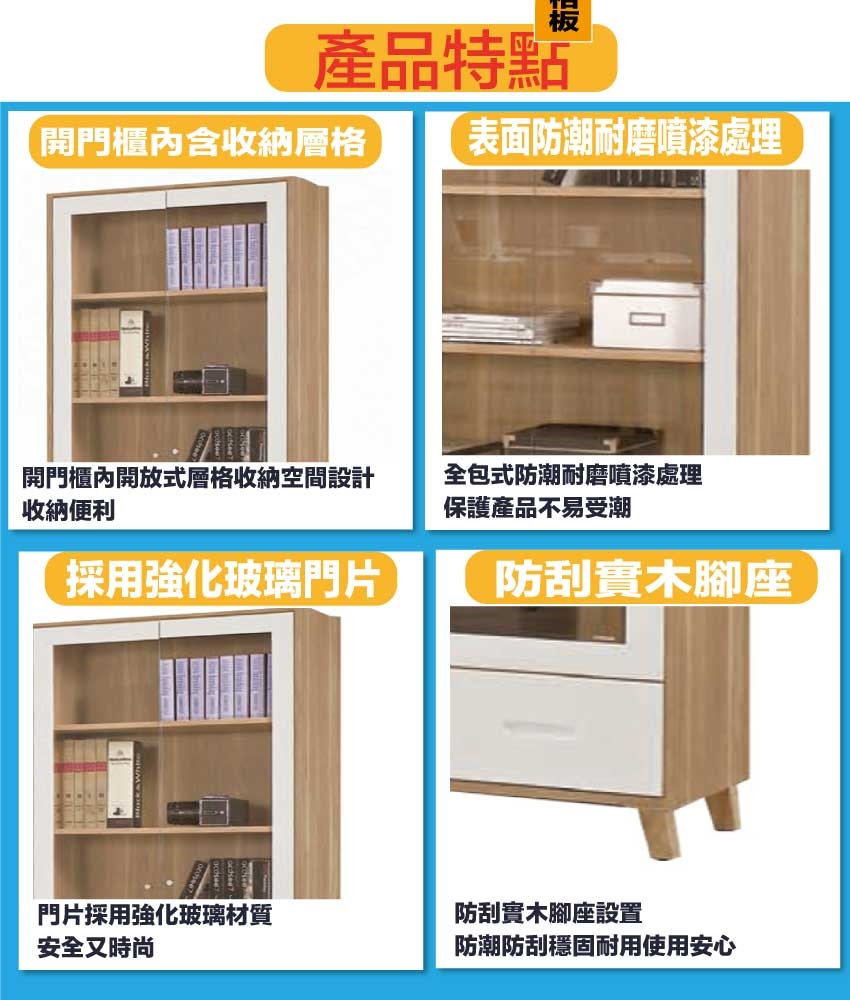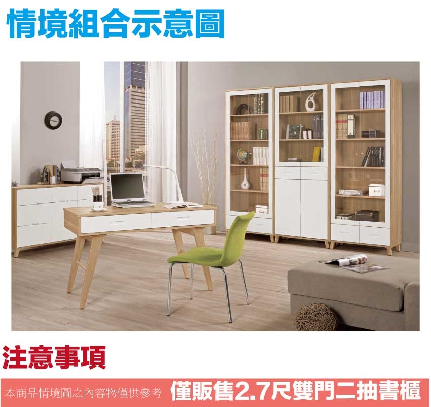 - ◆產品名稱:【綠家居】卡蜜雙色2.7尺二門二抽書櫃