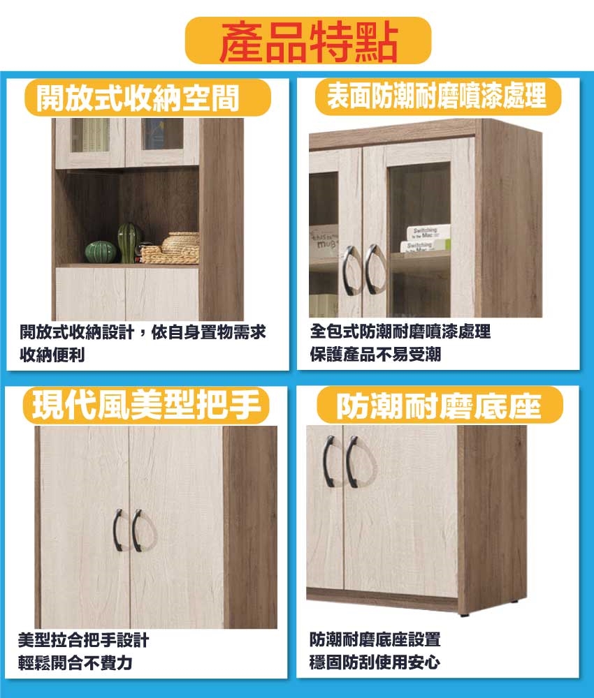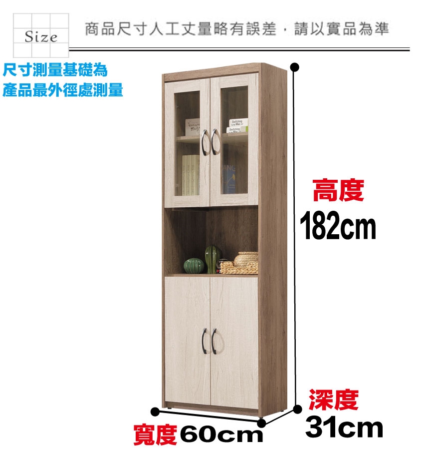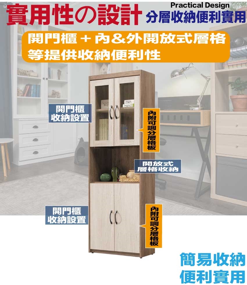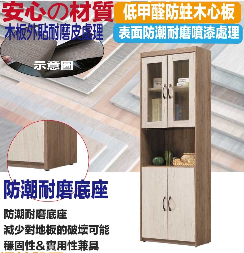 - ◆產品名稱:【綠家居】愛達雙色2尺四門中空書櫃