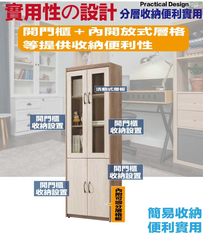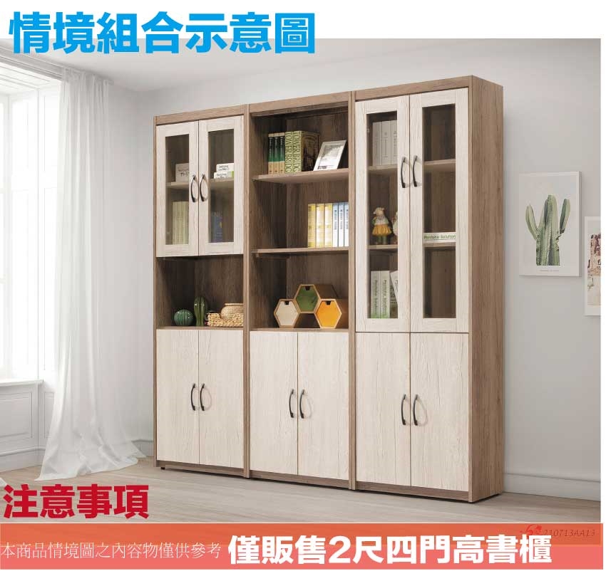 - ◆產品名稱:【綠家居】愛達雙色2尺四門高書櫃