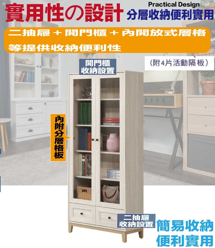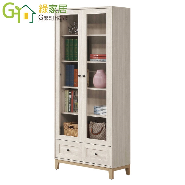 【綠家居】洛蒂克2.7尺二門二抽書櫃