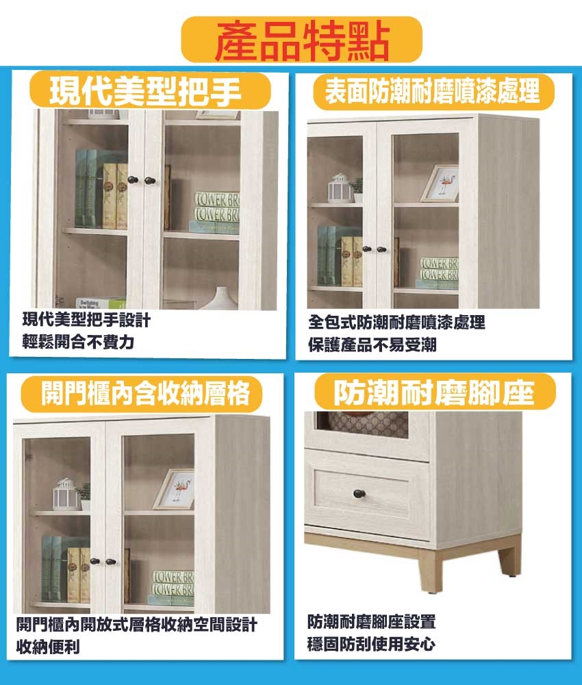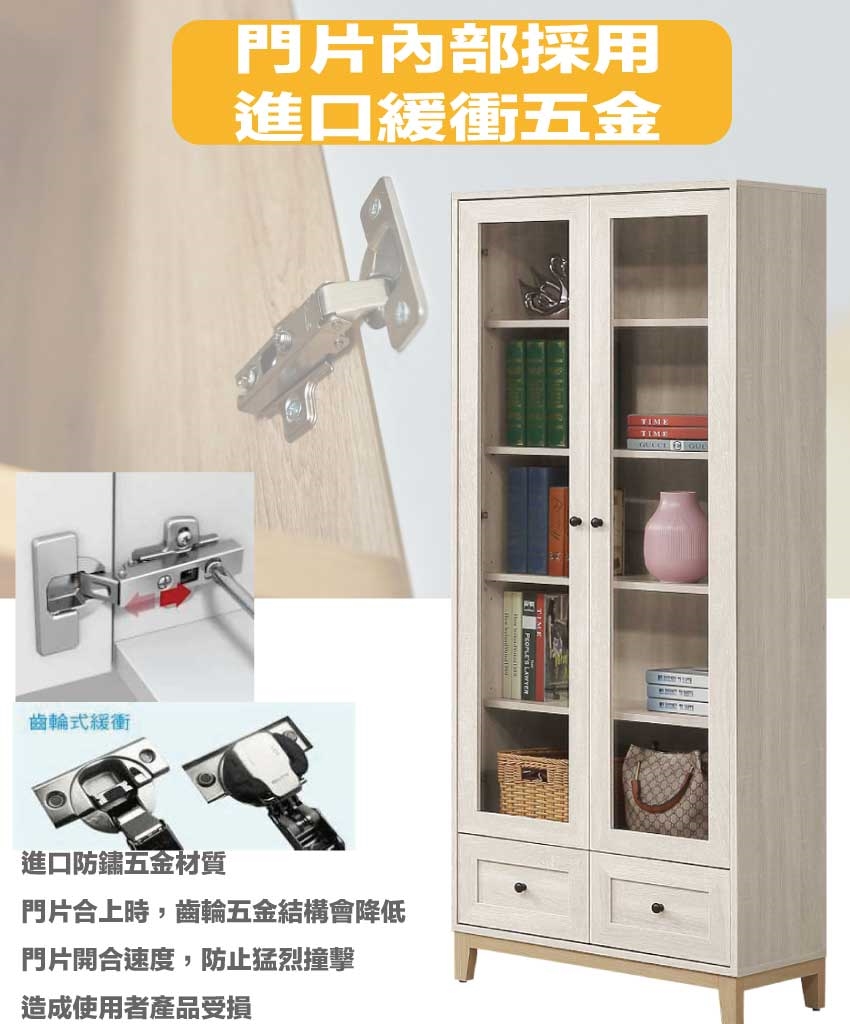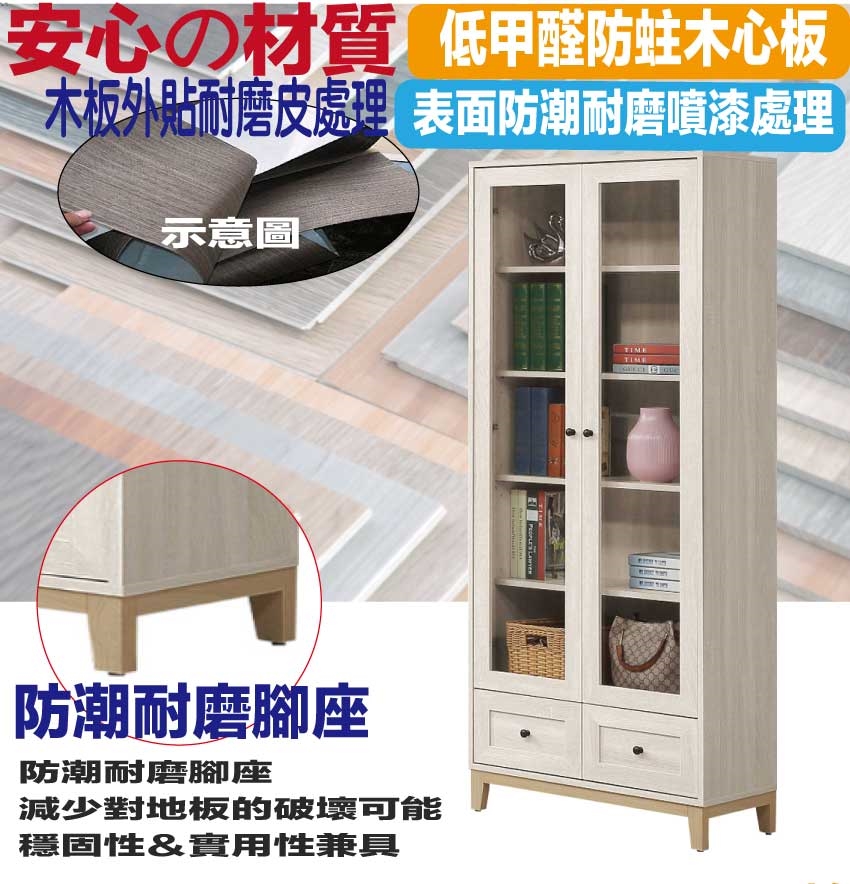 - ◆產品名稱:【綠家居】洛蒂克2.7尺二門二抽書櫃