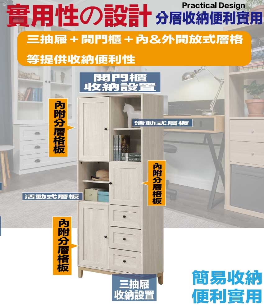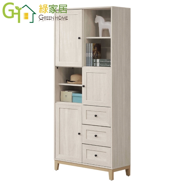 【綠家居】洛蒂克2.7尺三門三抽書櫃