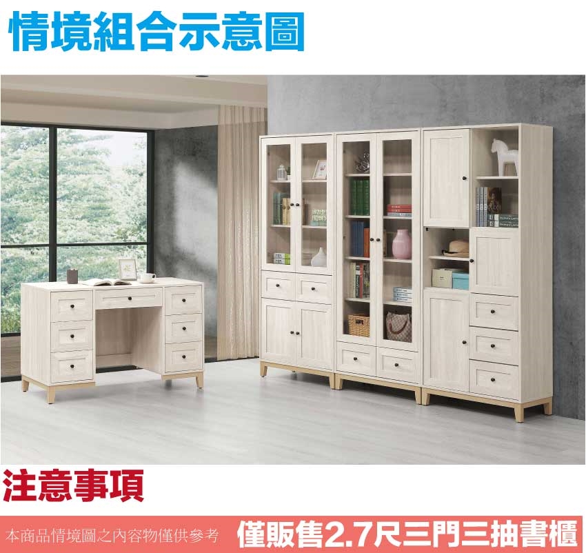 - ◆產品名稱:【綠家居】洛蒂克2.7尺三門三抽書櫃