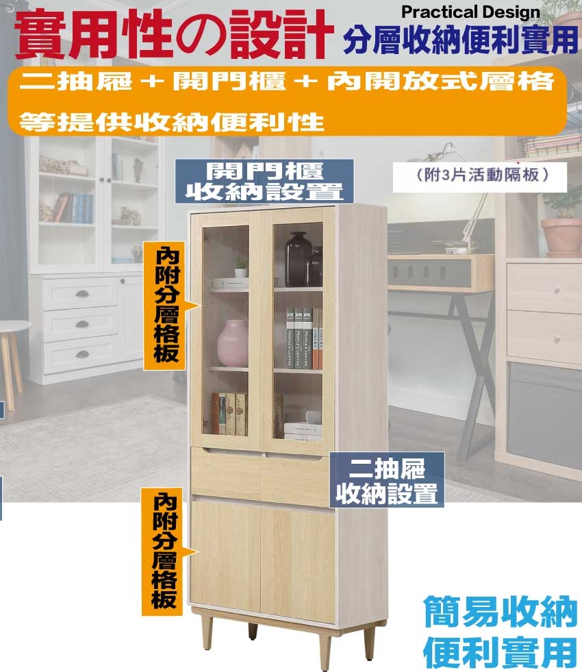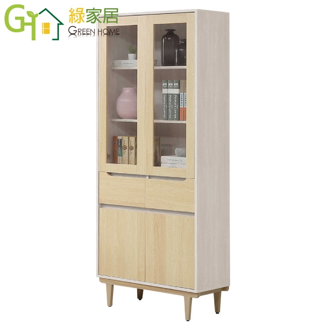 【綠家居】菲可雙色2.7尺四門二抽書櫃