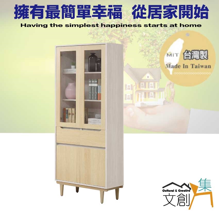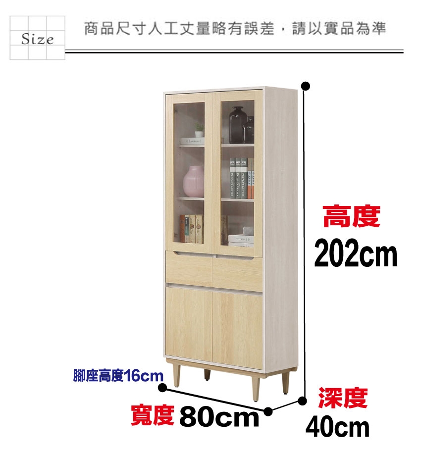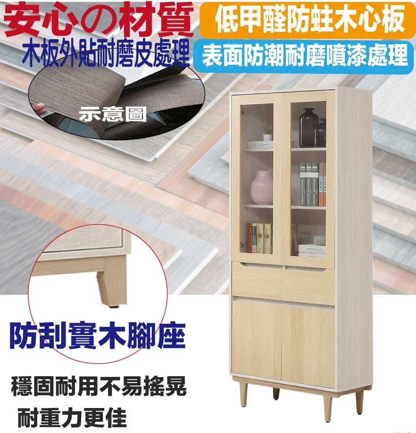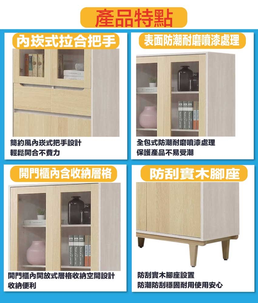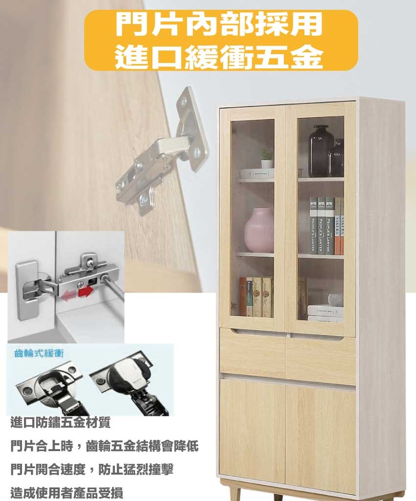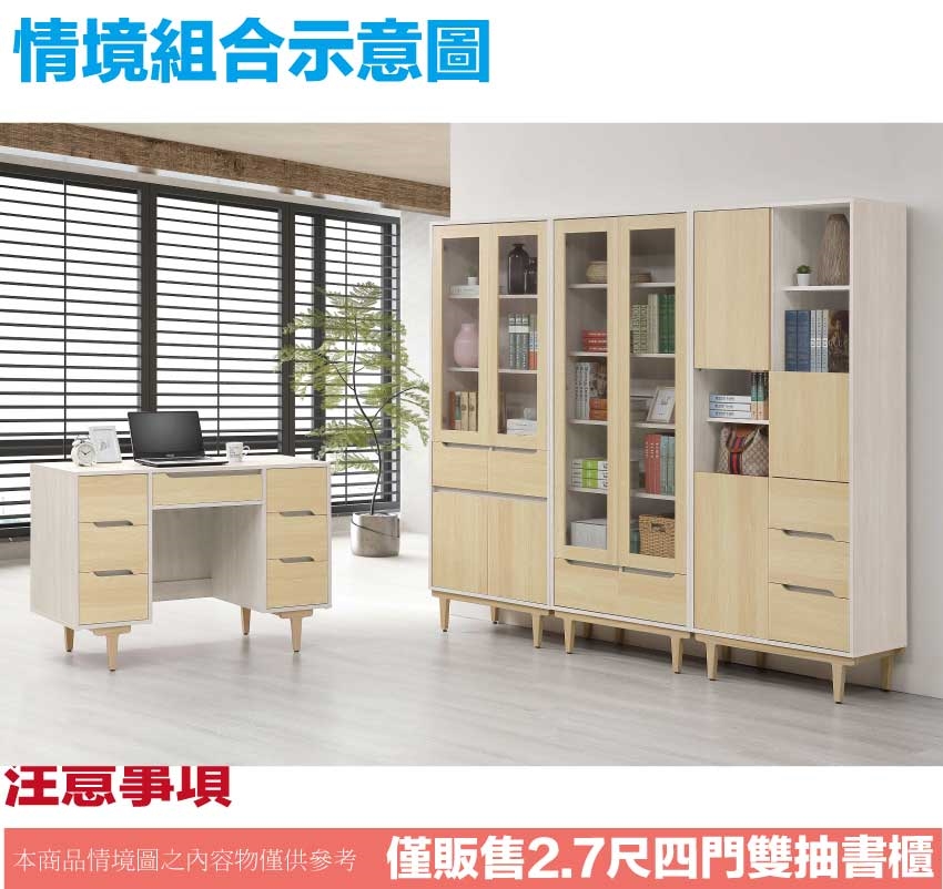 - ◆產品名稱:【綠家居】菲可雙色2.7尺四門二抽書櫃