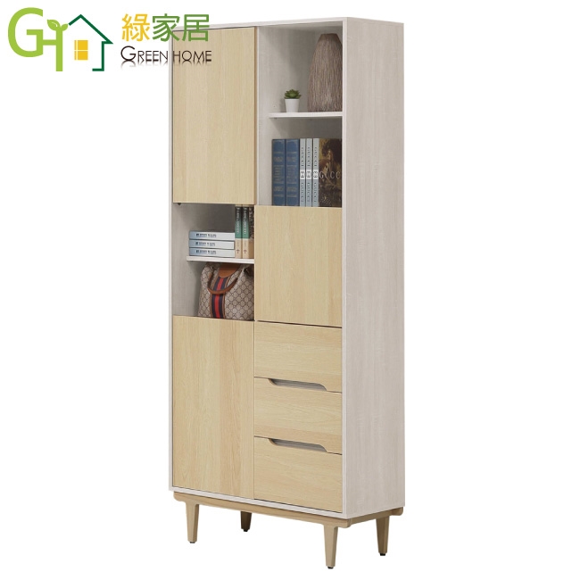 【綠家居】菲可雙色2.7尺三門三抽書櫃