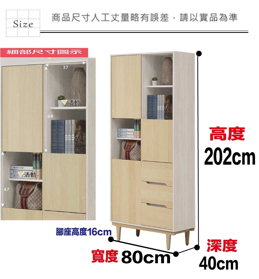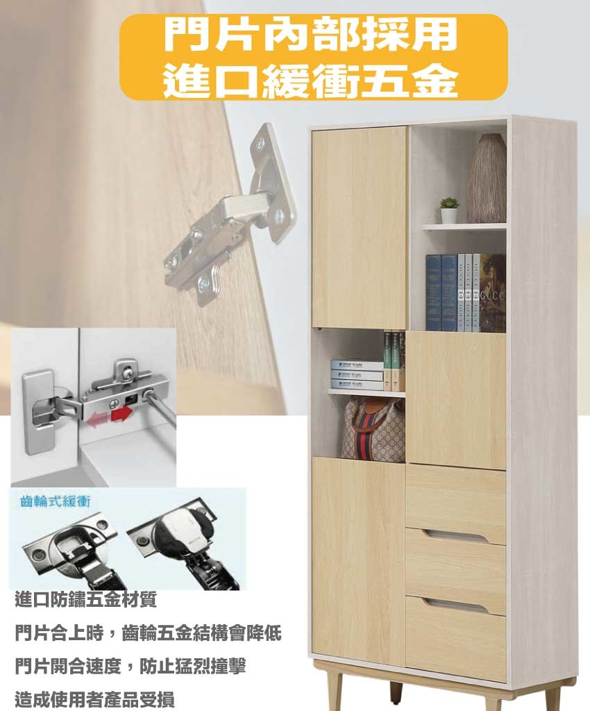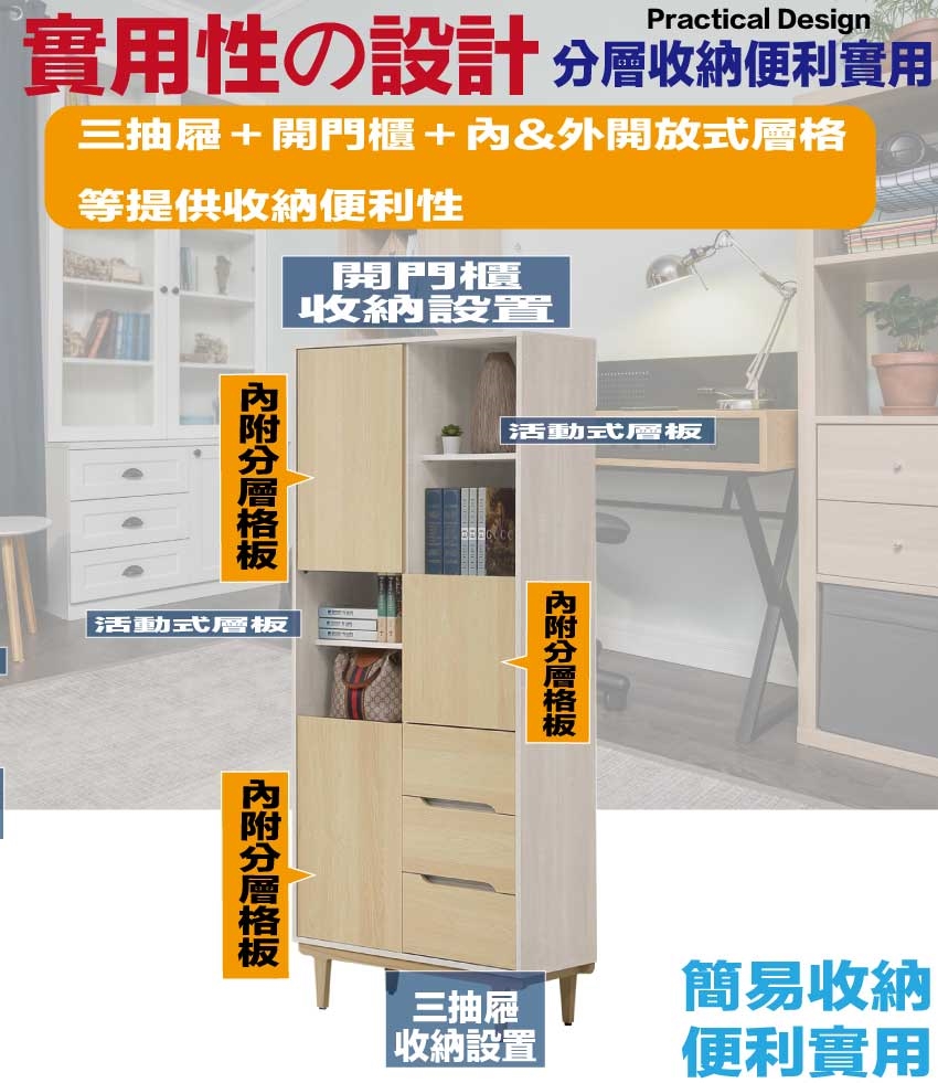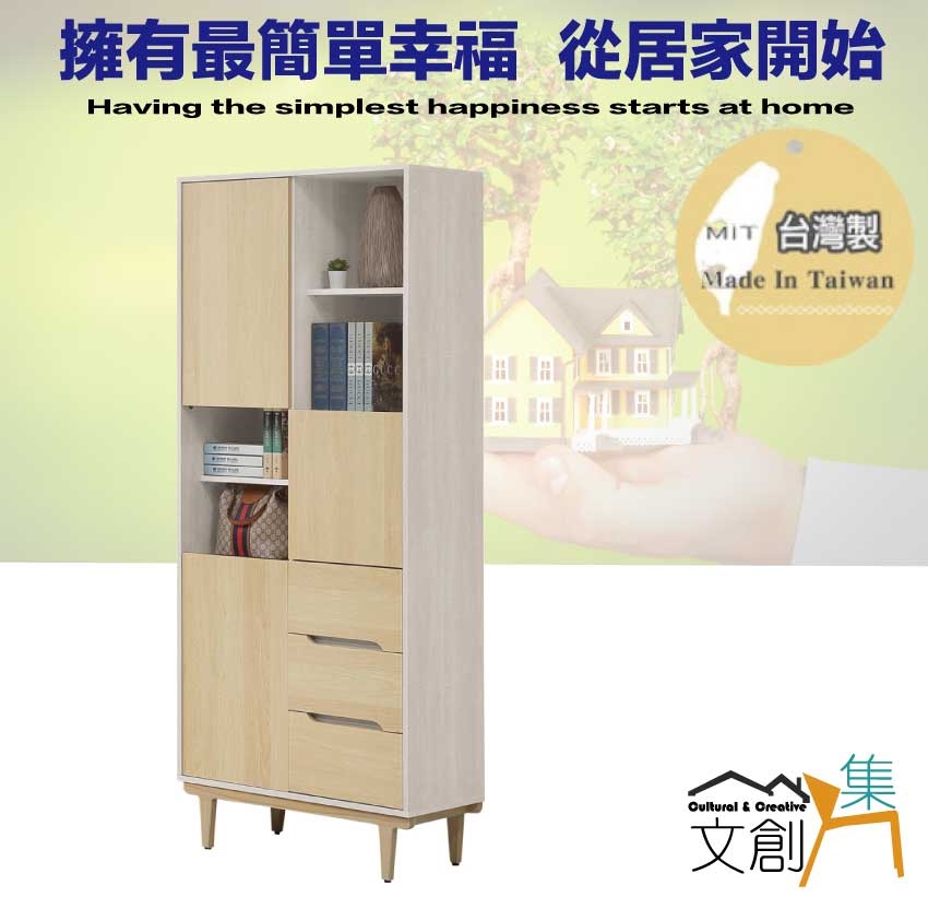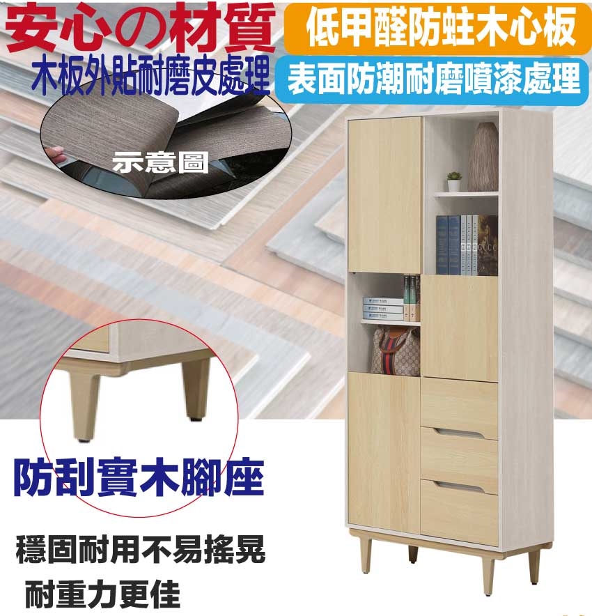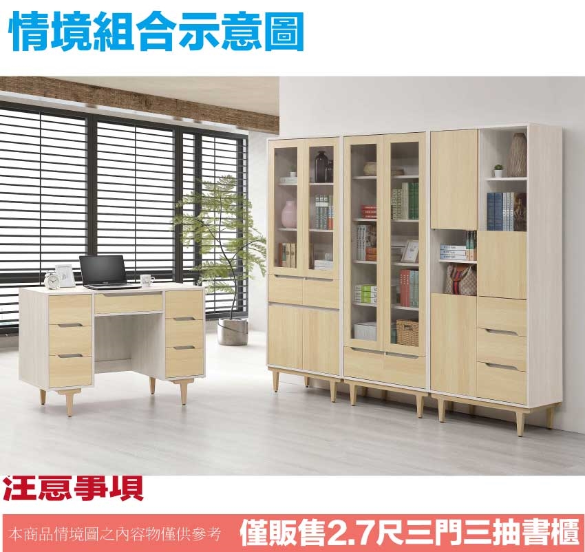 - ◆產品名稱:【綠家居】菲可雙色2.7尺三門三抽書櫃