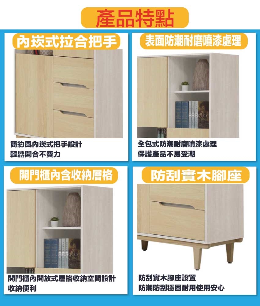 材質:防蛀木心板+防刮實木腳座+五金滑軌結構+防夾手緩衝五金