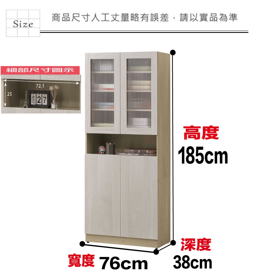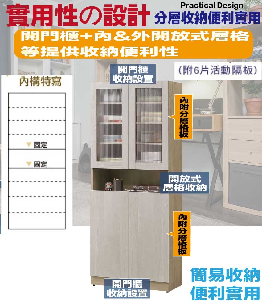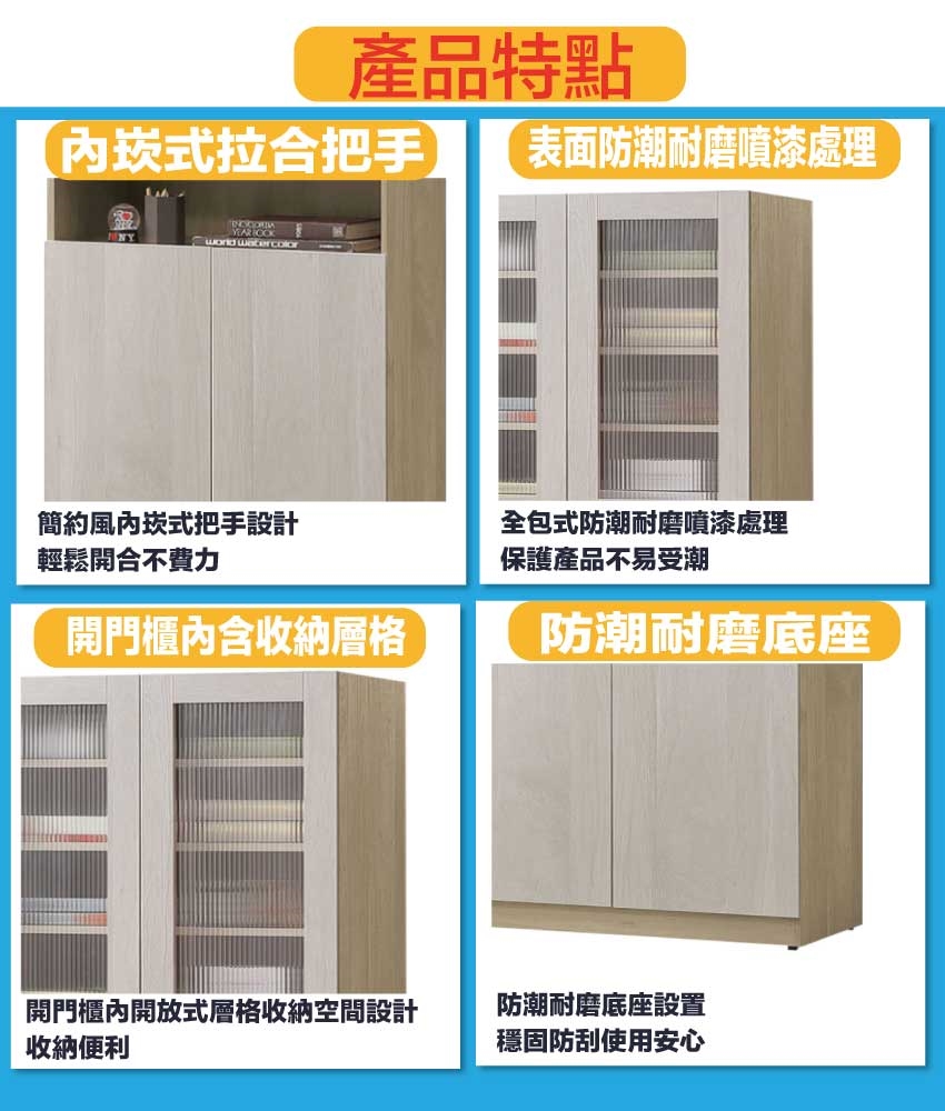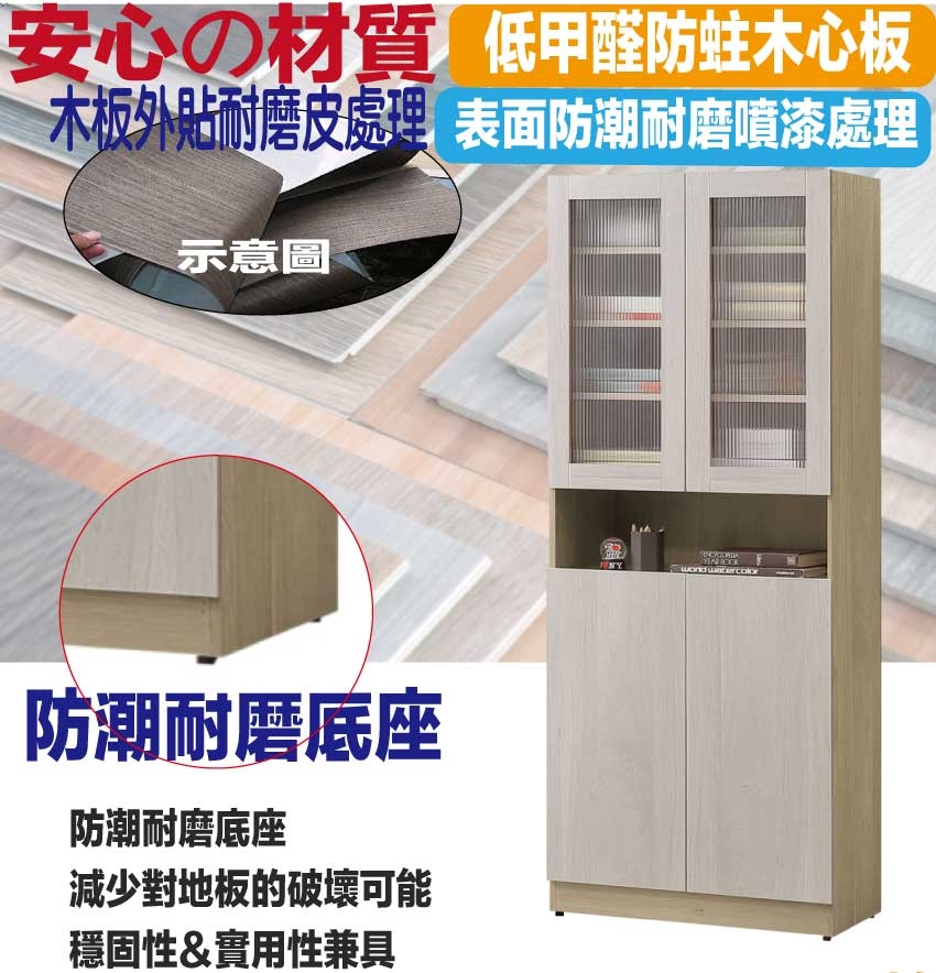 - ◆產品名稱:【綠家居】蘿克2.5尺中空四門書櫃/收納櫃
