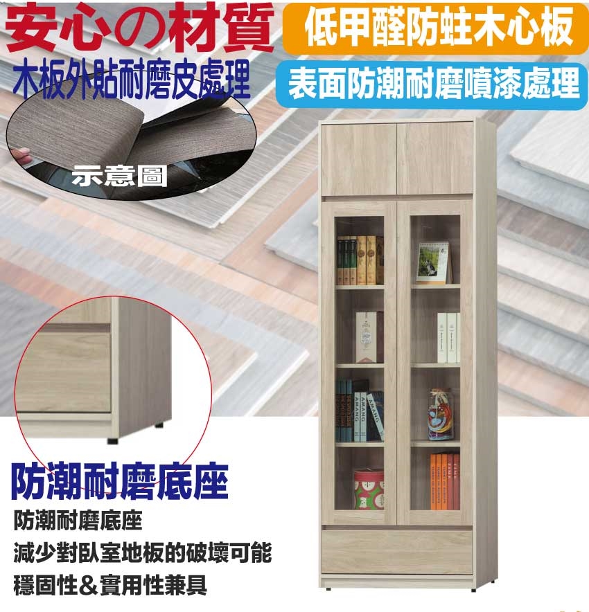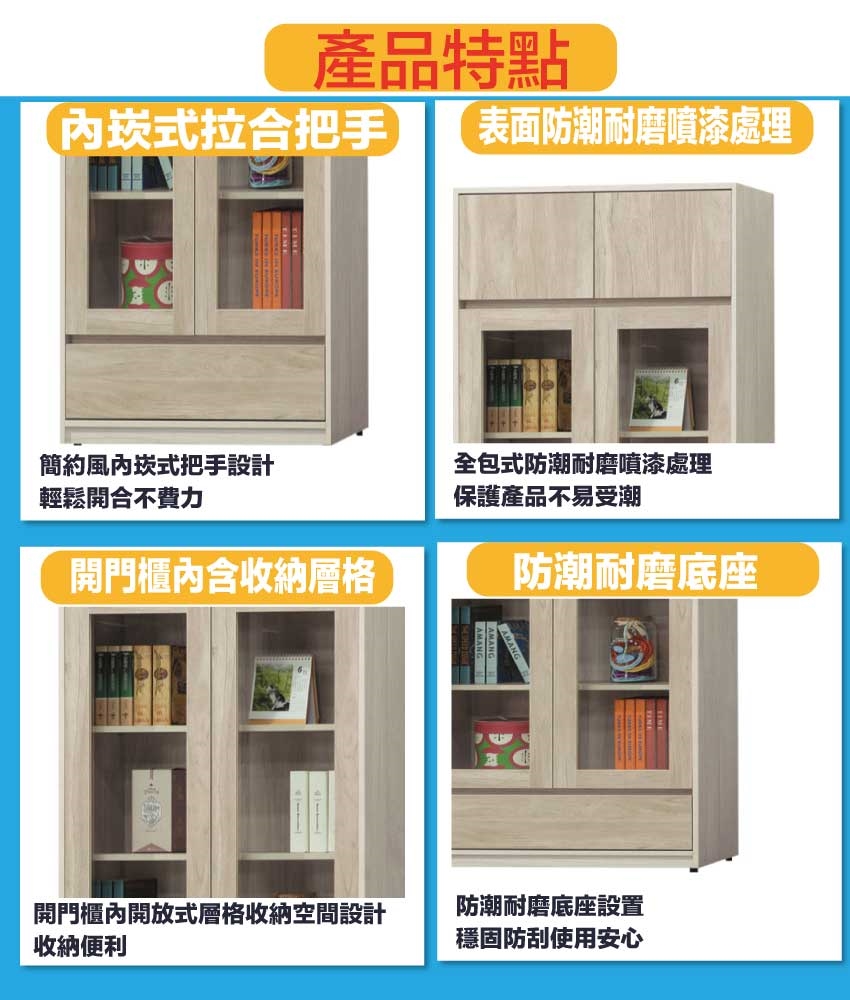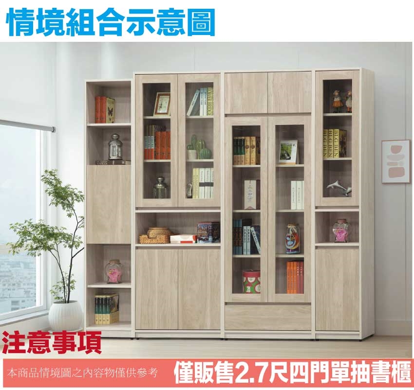 - ◆產品名稱:【綠家居】恩斯2.7尺四門單抽收納櫃/書櫃