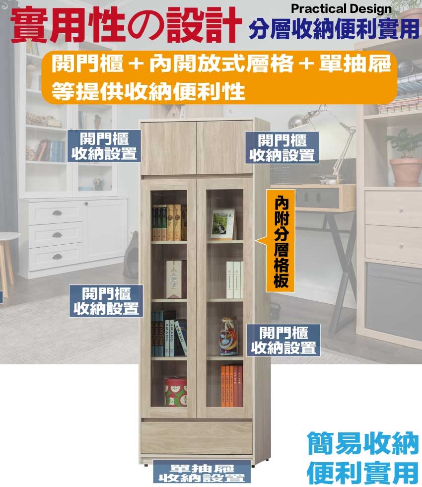 【綠家居】恩斯2.7尺四門單抽收納櫃/書櫃
