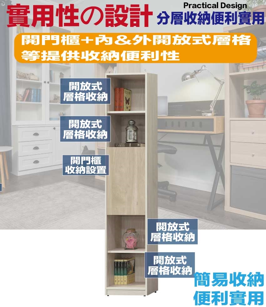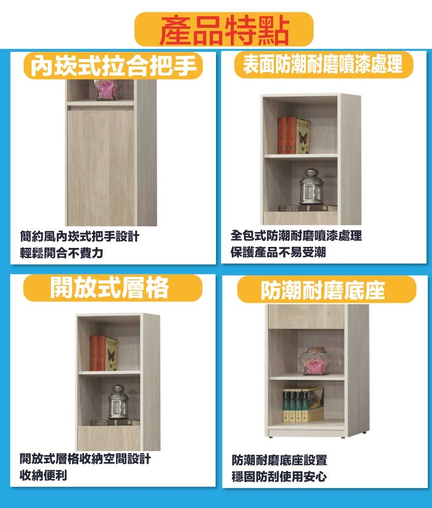 - ◆產品名稱:【綠家居】恩斯1.3尺單門開放書櫃