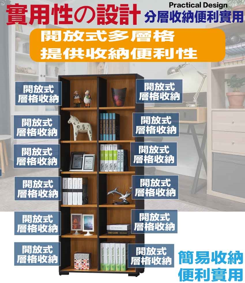 - ◆產品名稱:【綠家居】恩博2.7尺開放多格書櫃