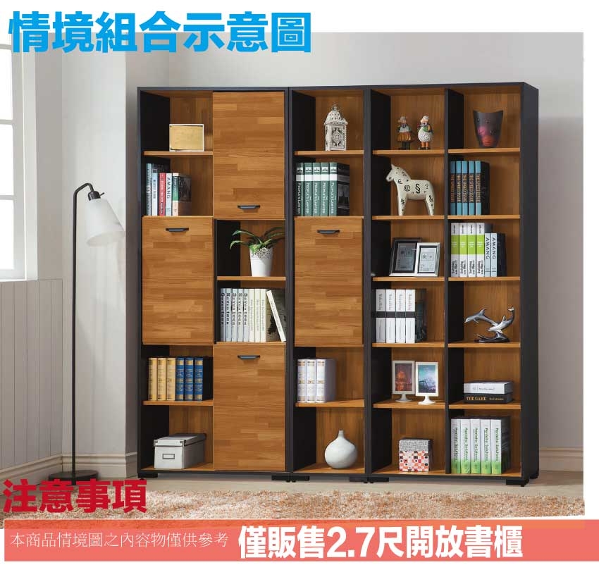 【綠家居】恩博2.7尺開放多格書櫃