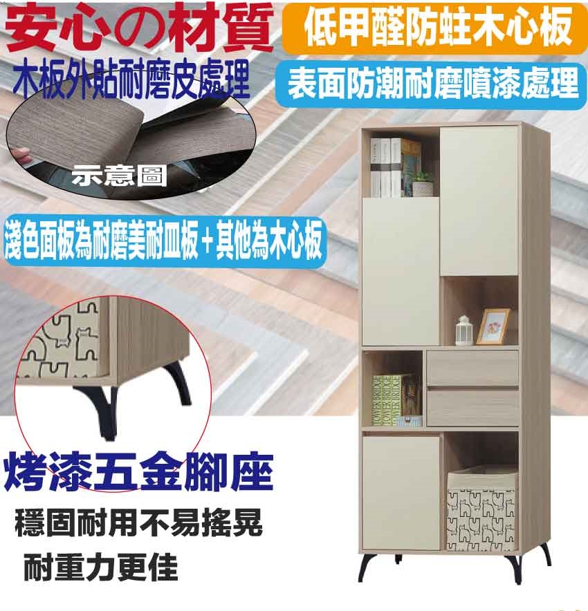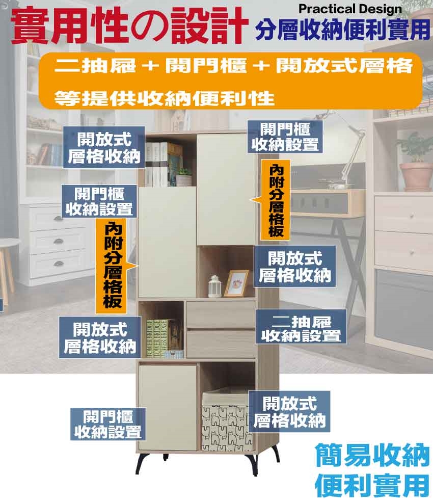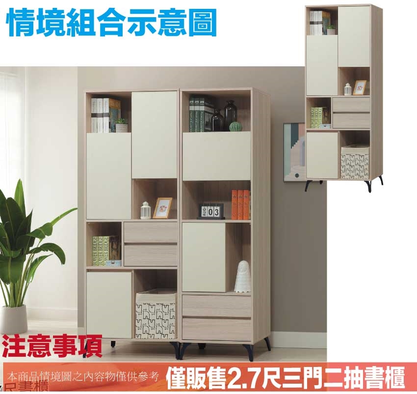 - ◆產品名稱:【綠家居】美斯2.7尺二抽三門書櫃