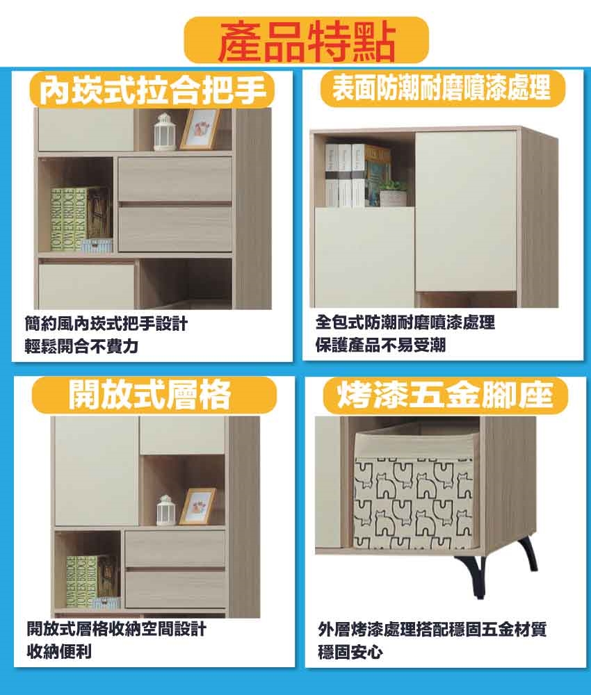 材質:防蛀木心板+烤漆五金腳座+耐磨美耐皿板+五金滑軌結構+防夾手緩衝五金