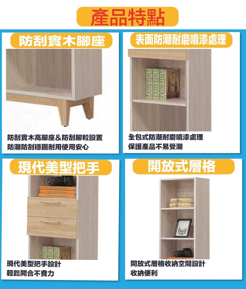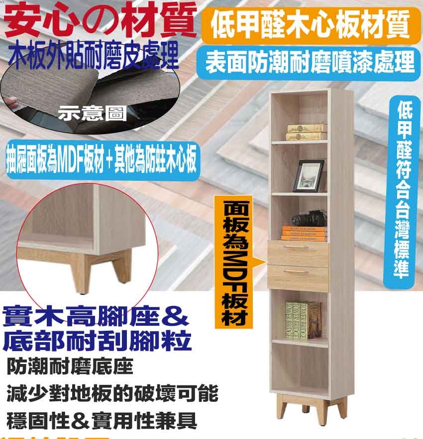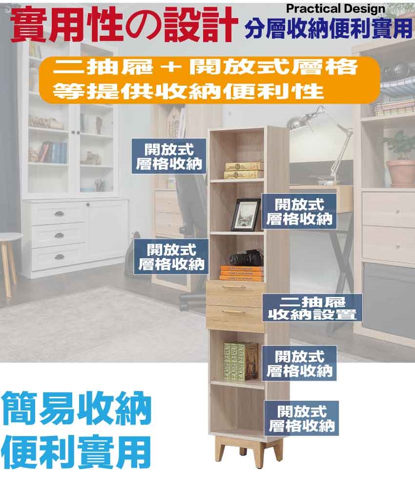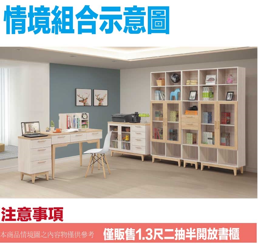 - ◆產品名稱:【綠家居】法西1.3尺二抽半開放書櫃