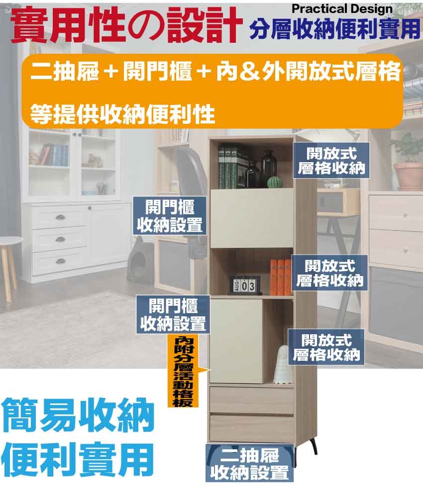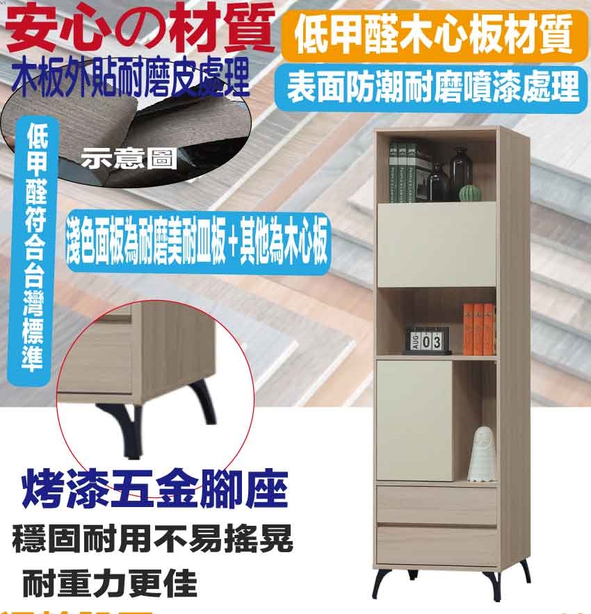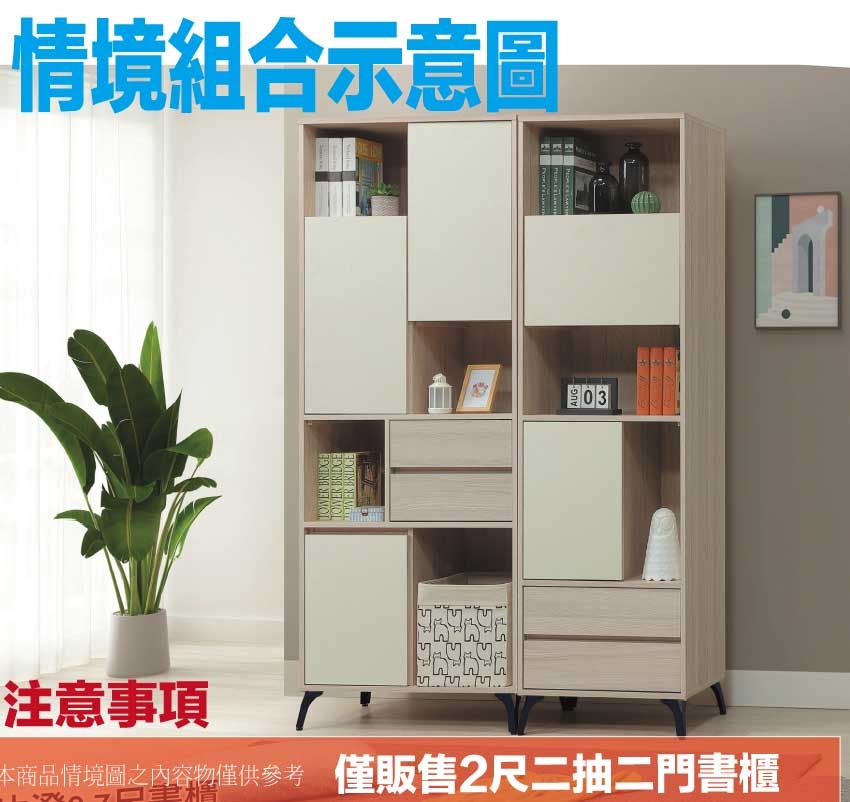 - ◆產品名稱:【綠家居】蕾克2尺二門二抽高書櫃
