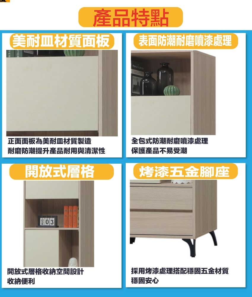 材質:防蛀木心板+烤漆金屬腳座+防夾手緩衝門片五金