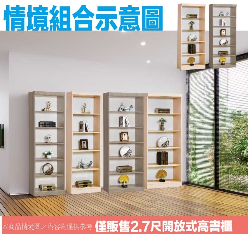 【綠家居】米果2.7尺開放五格高書櫃/收納櫃(二色可選)