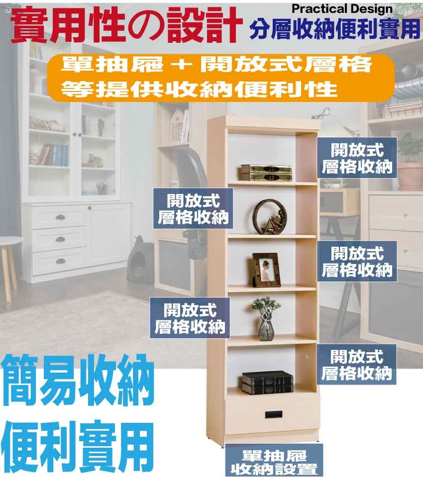 - 產品名稱:【綠家居】米果2尺開放單抽高書櫃/收納櫃(二色可選)