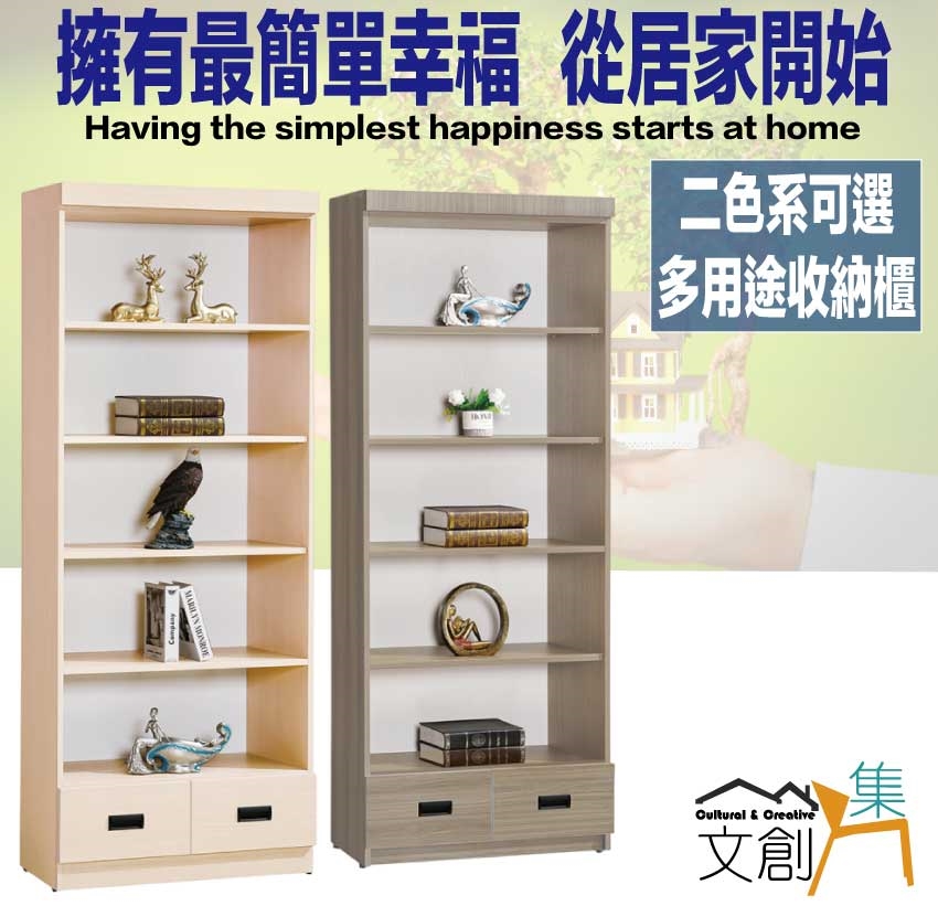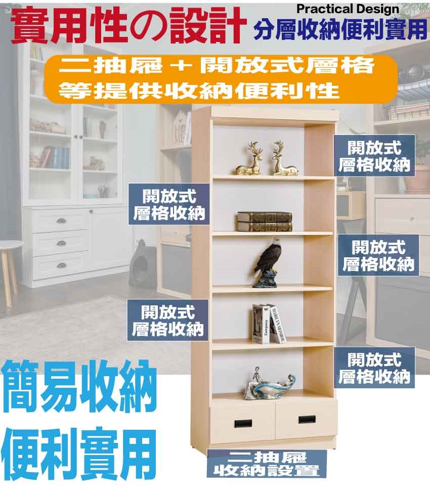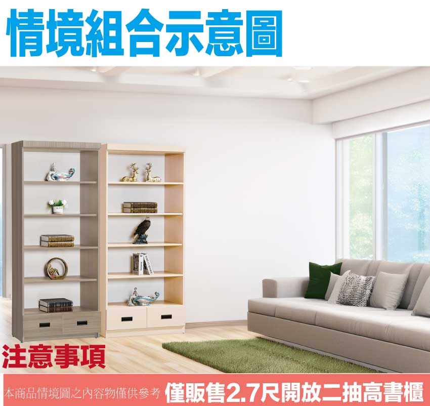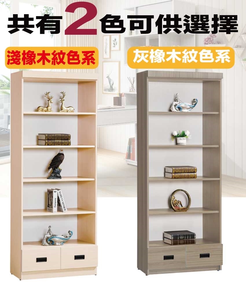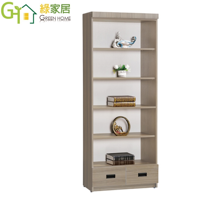 【綠家居】米果2.7尺開放二抽高書櫃/收納櫃(二色可選)