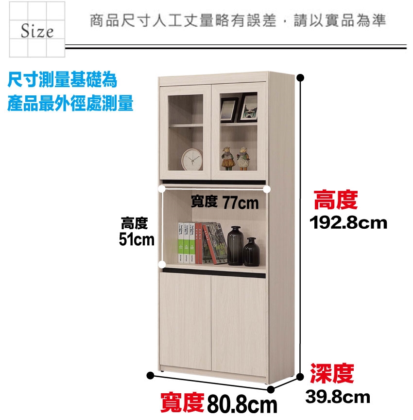 - 尺寸:(寬)80.8x(深)39.8x(高)192.8/公分