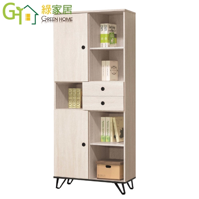 【綠家居】拉德2.7尺二門二抽高書櫃/收納櫃(左向開門)