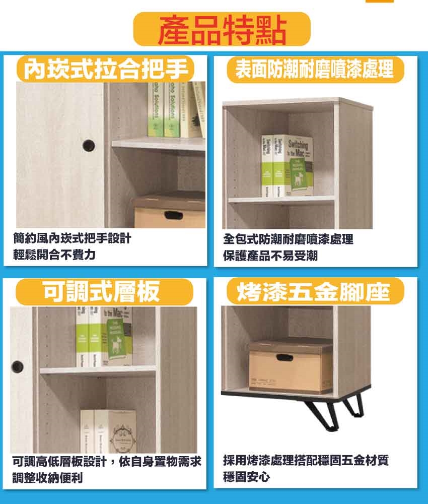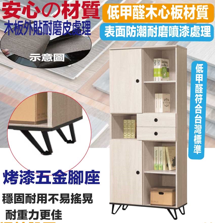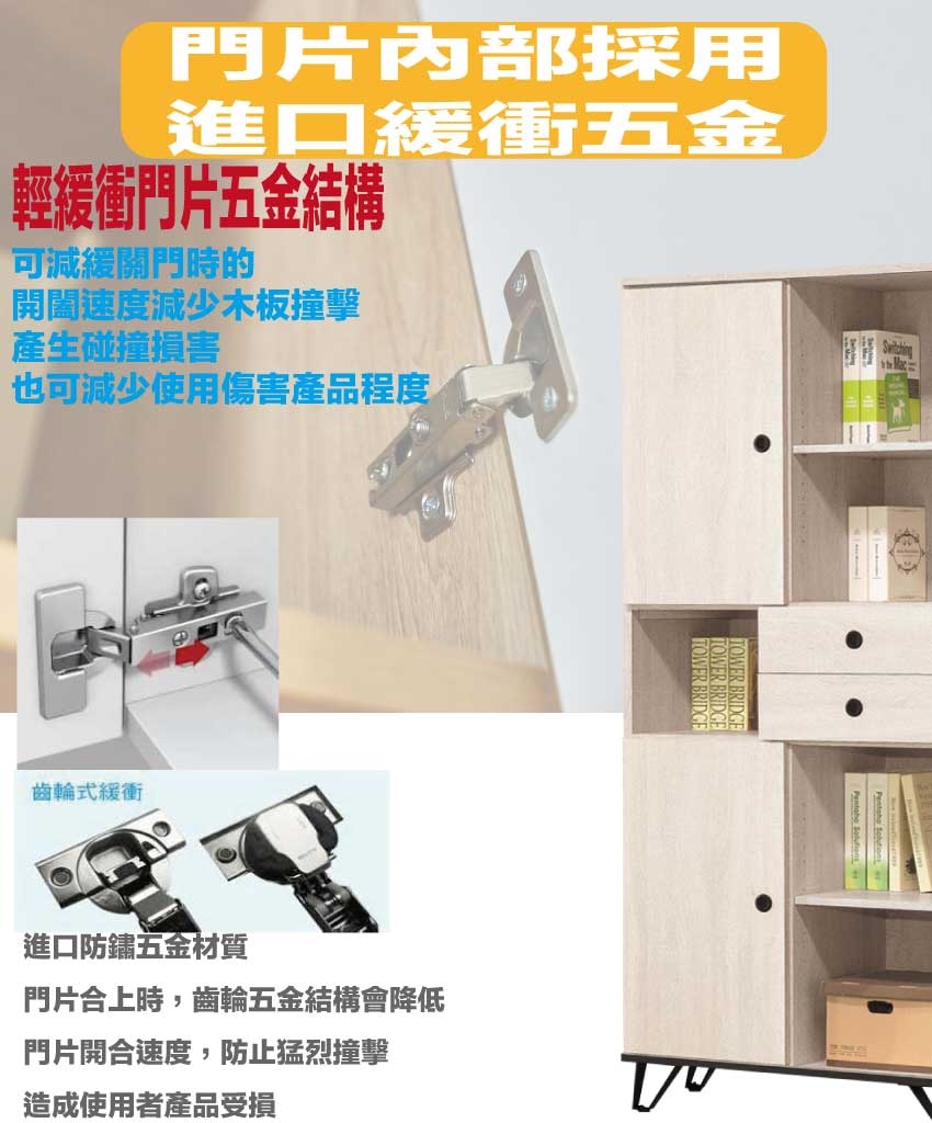 材質:防蛀木心板+烤漆金屬腳座+防夾手緩衝門片五金